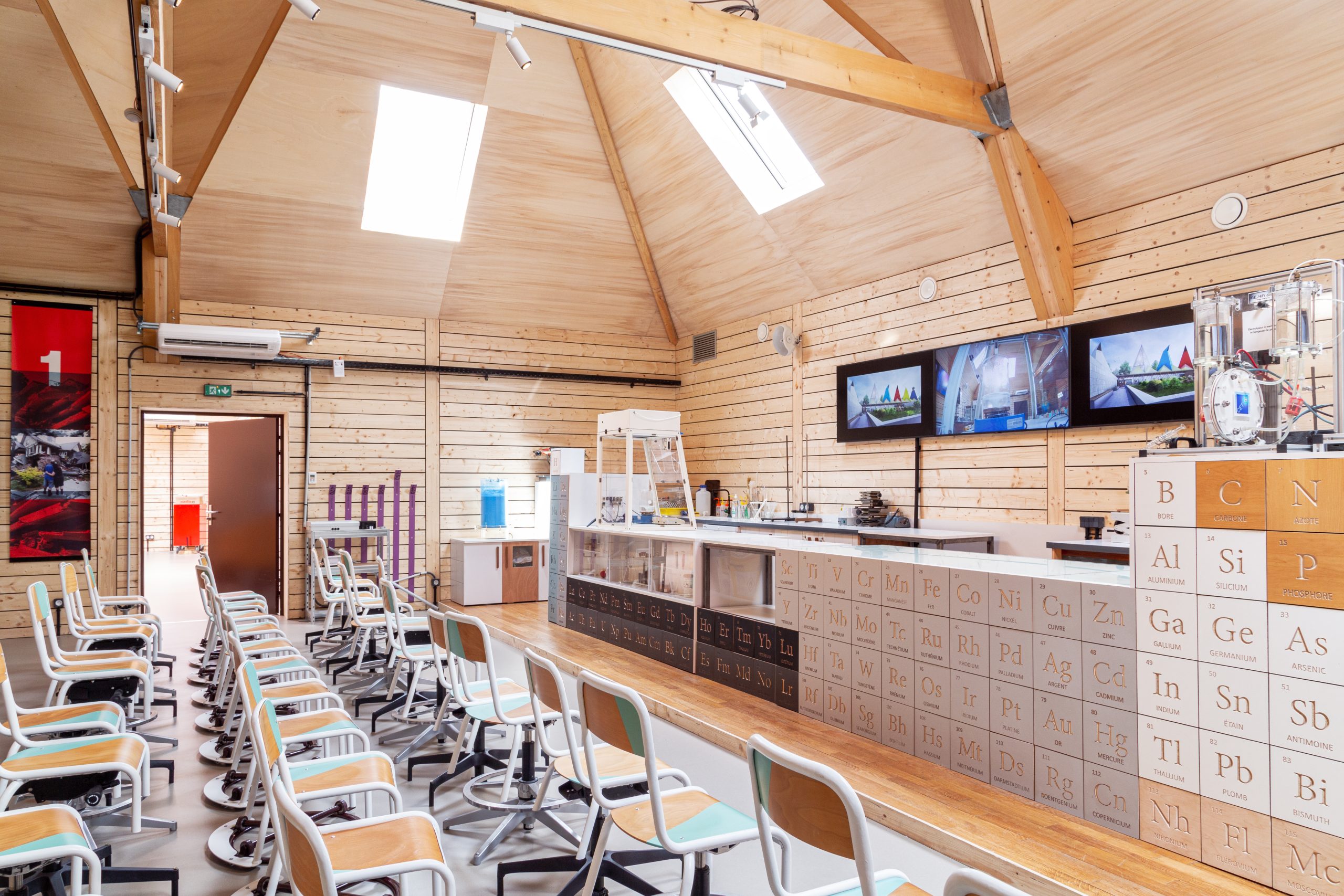 Agencement et scénographie des salles du bâtiment temporaire « Les Étincelles du Palais de la découverte », réemploi des matériaux démontés dans le cadre des travaux de réhabilitation du Palais de la découverte.