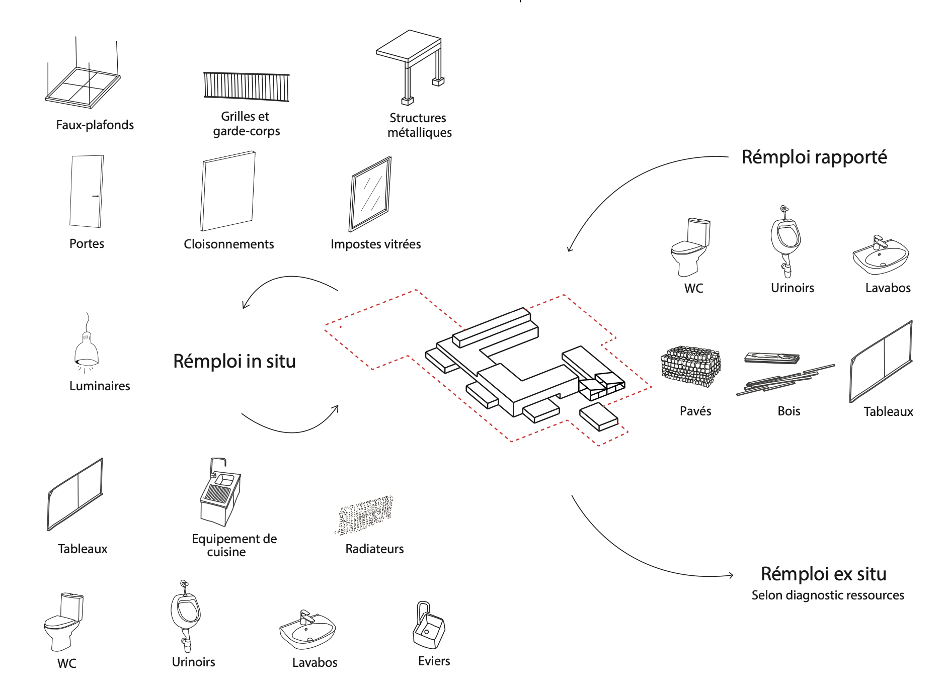 Schéma du réemploi sur le projet.