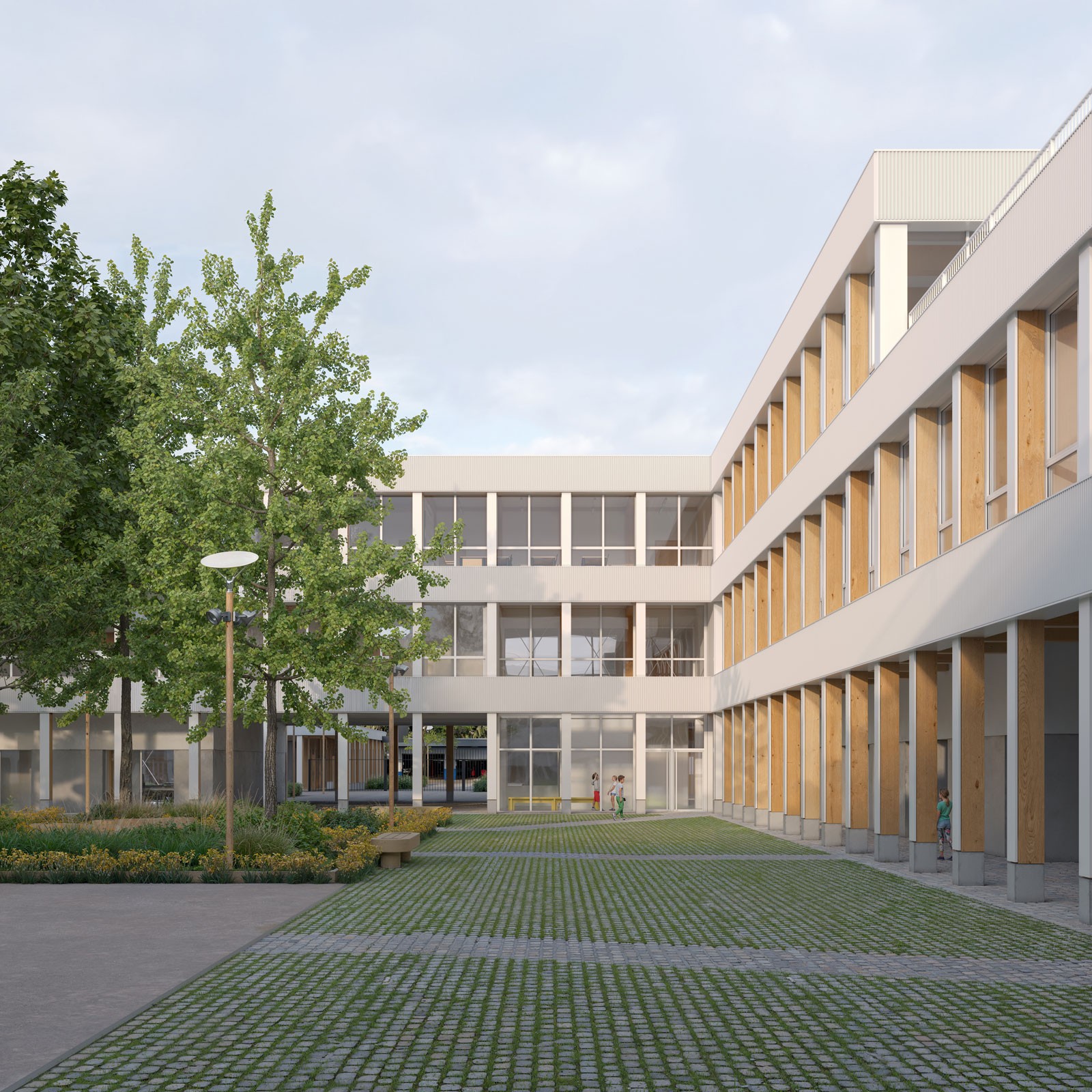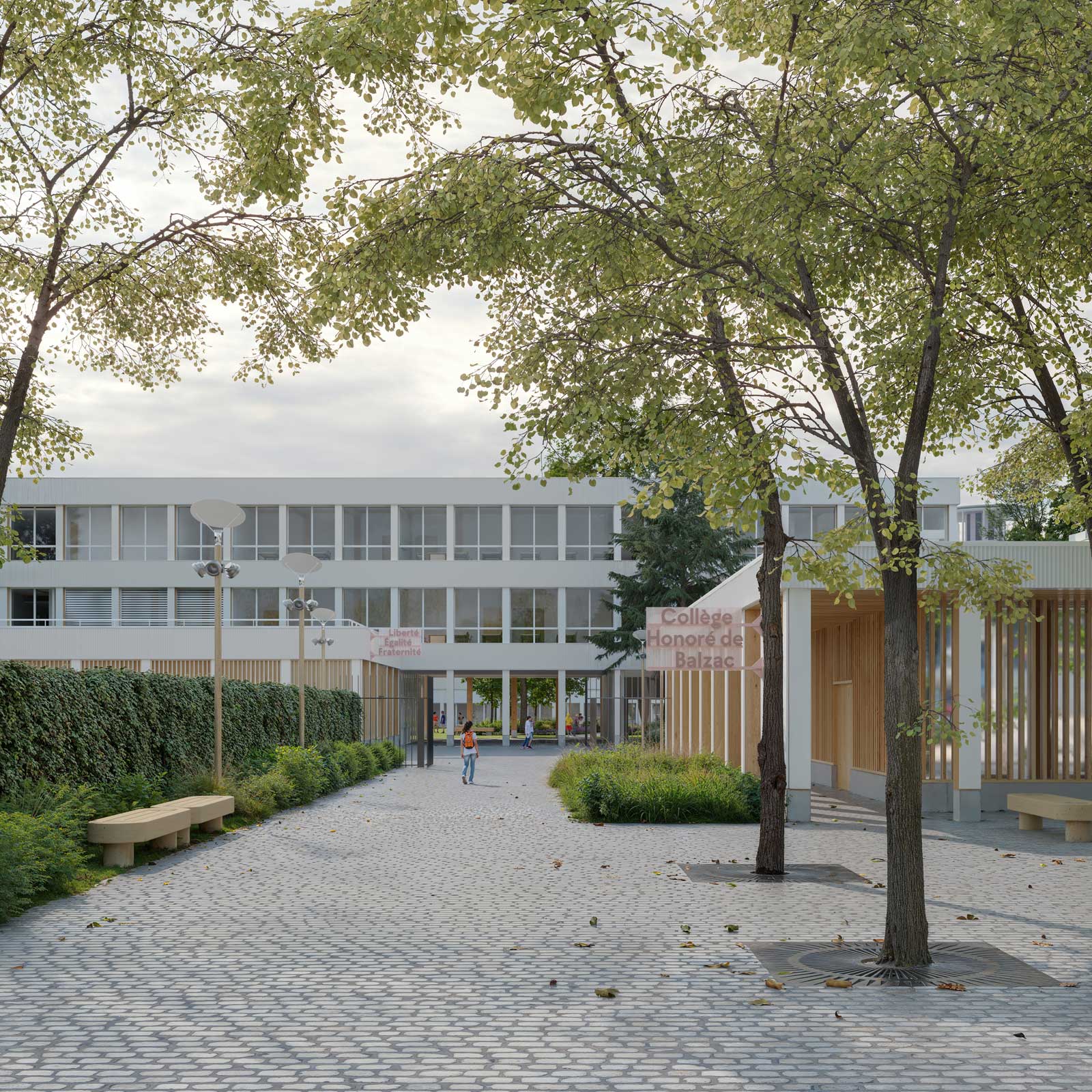 Perspective d'entrée du collège. Crédit : lotoarchilab