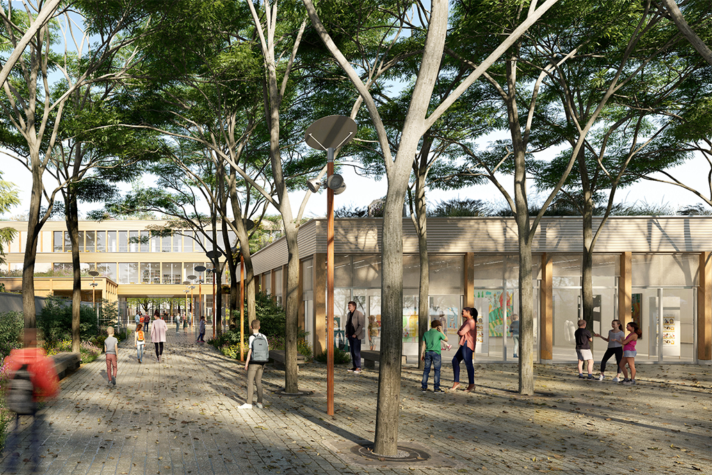 Perspective d'entrée du collège. Crédit : lotoarchilab